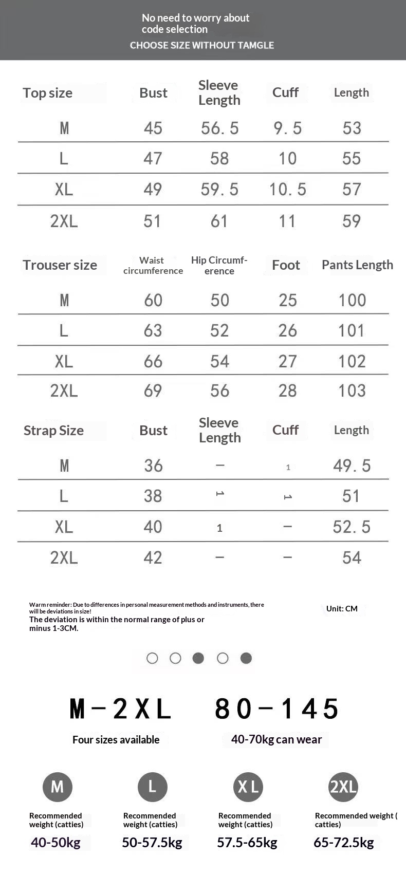 Size: M (80-100), L (100-115), XL (115-130), 2XL (130-145)