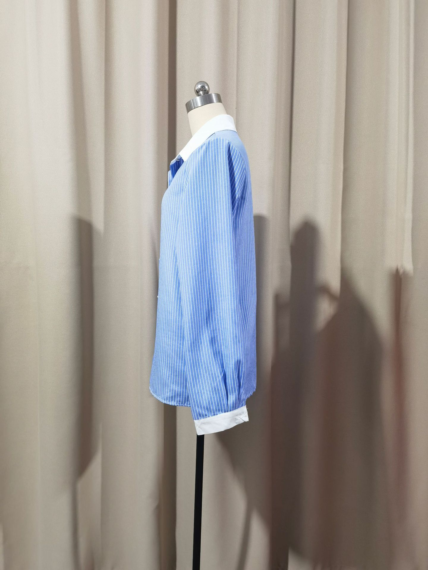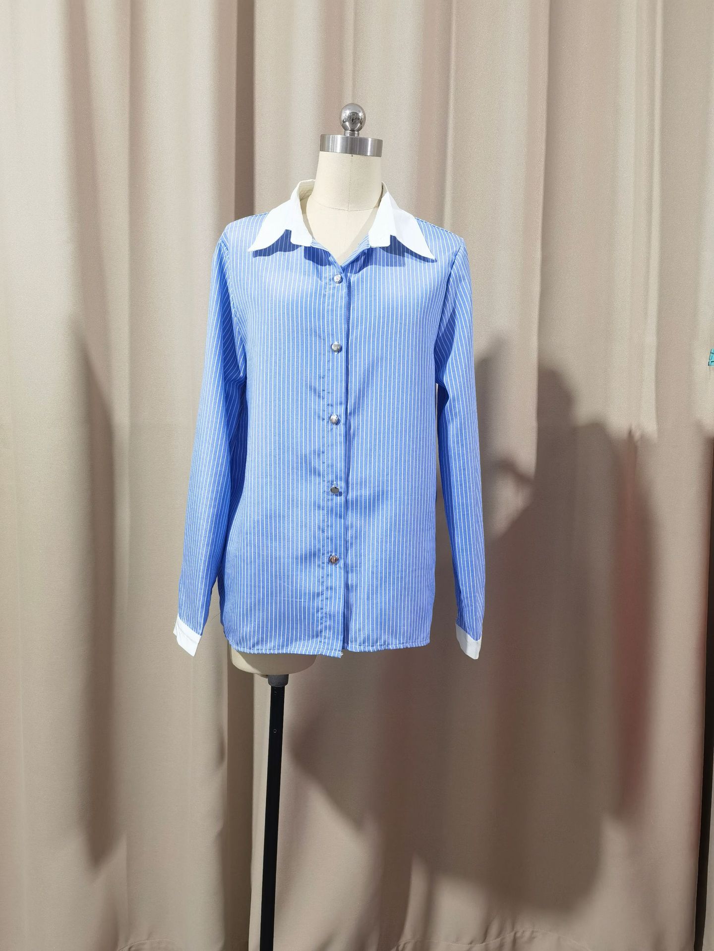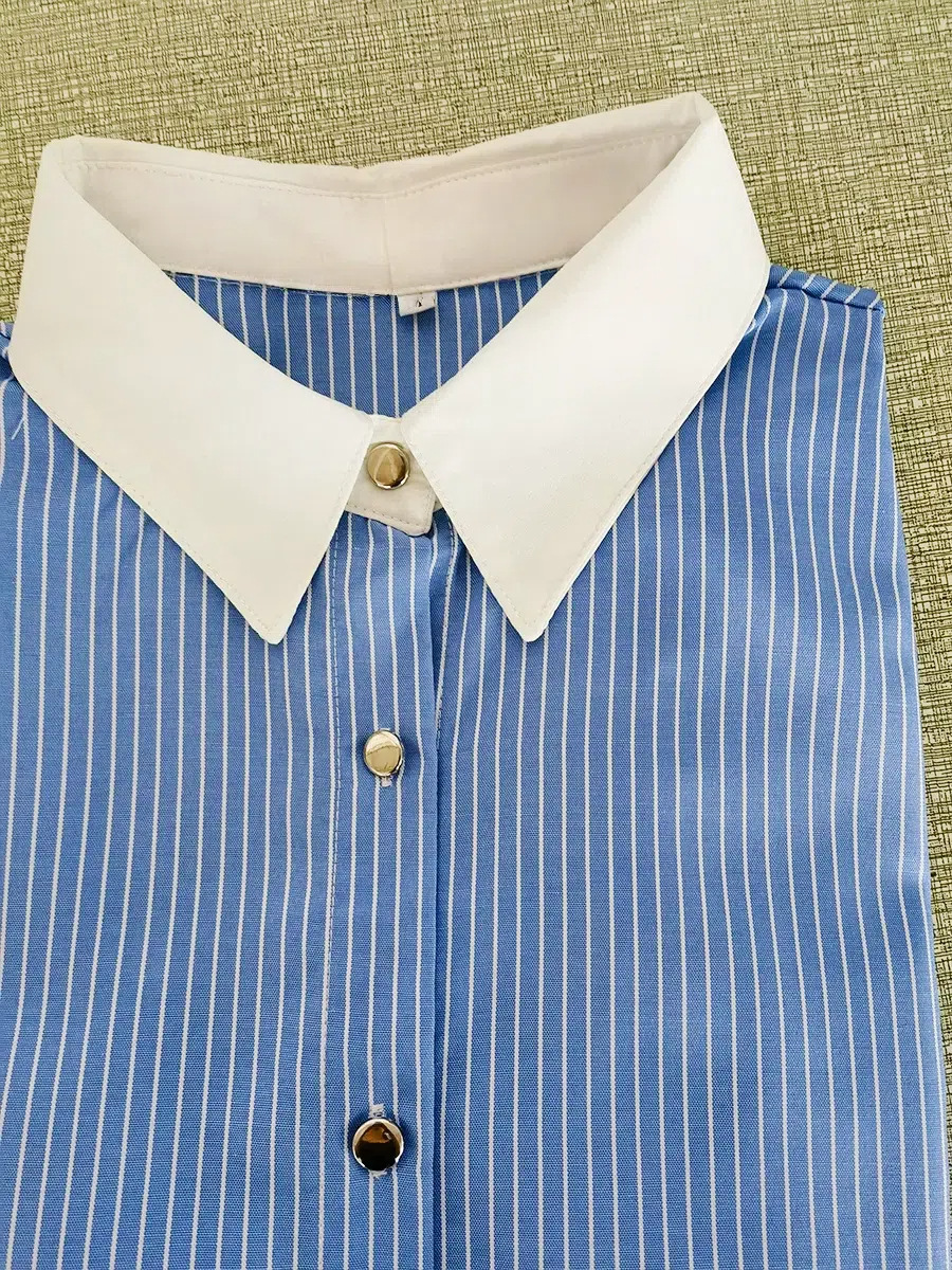 Women's French Loose Fashion Blue Striped Shirt